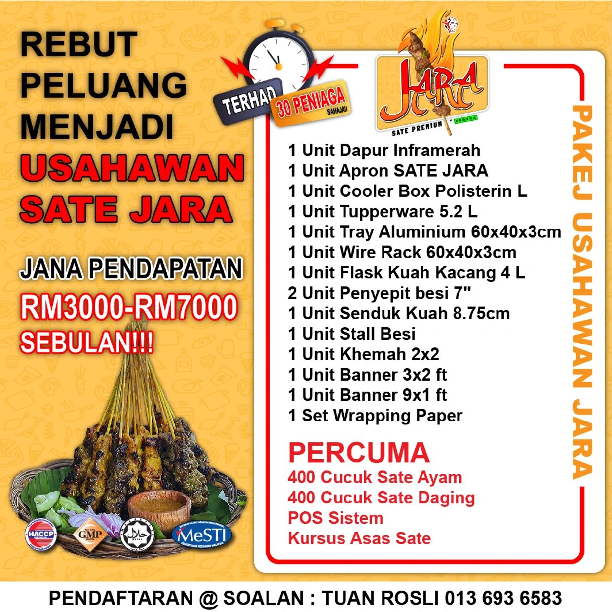 Program Usahawan JARA ini telah dibina khas untuk usahawan-usahawan samada baru atau yang berpengalaman menceburi bidang keusahawanan sate. JARA akan memberikan bimbingan secara PERCUMA serta liputan media sosial untuk menaikkan jualan dan pemasaran usahawan sate yang terlibat.